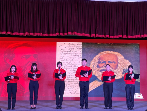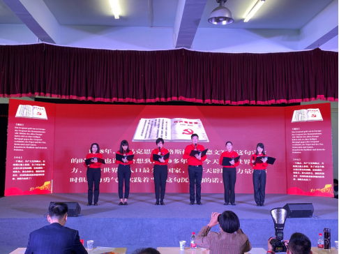 分团委书记刘迪老师精心设计导演下,大学英语部陆朋、日文系张慧霞、俄文系乐音、德文系张申威、法文系姜俊钦和西班牙语系秦剑等6位老师用中外7种语言精彩演绎了《共产党宣言》这一闪耀着真理光芒的红色经典。大屏幕中,一幅幅珍贵的照片和生动的语言回顾了“宣言”从诞生到在中国广泛传播的全过程。伴随着激昂的国际歌,老师们用世界语言交替喊出“全世界无产者联合起来”的口号,将演出推向高潮。整个节目凸显学科特色、彰显时代风采、展现经典魅力、传承红色基因,得到了评委的高度评价,收获了观众们的肯定和赞扬。最终,在全部参赛的28个二级工会中,红桃视频