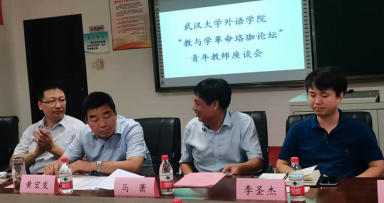 “教与学革命珞珈论坛”青年教师座谈会在学院教发中心召开。学院党委书记黄宏发、院长马萧、副书记刘涛、副院长李圣杰、程向莉出席会议,学院各系部十余位青年教师代表参加了座谈会,会议由学院本科办主任陈连平主持。