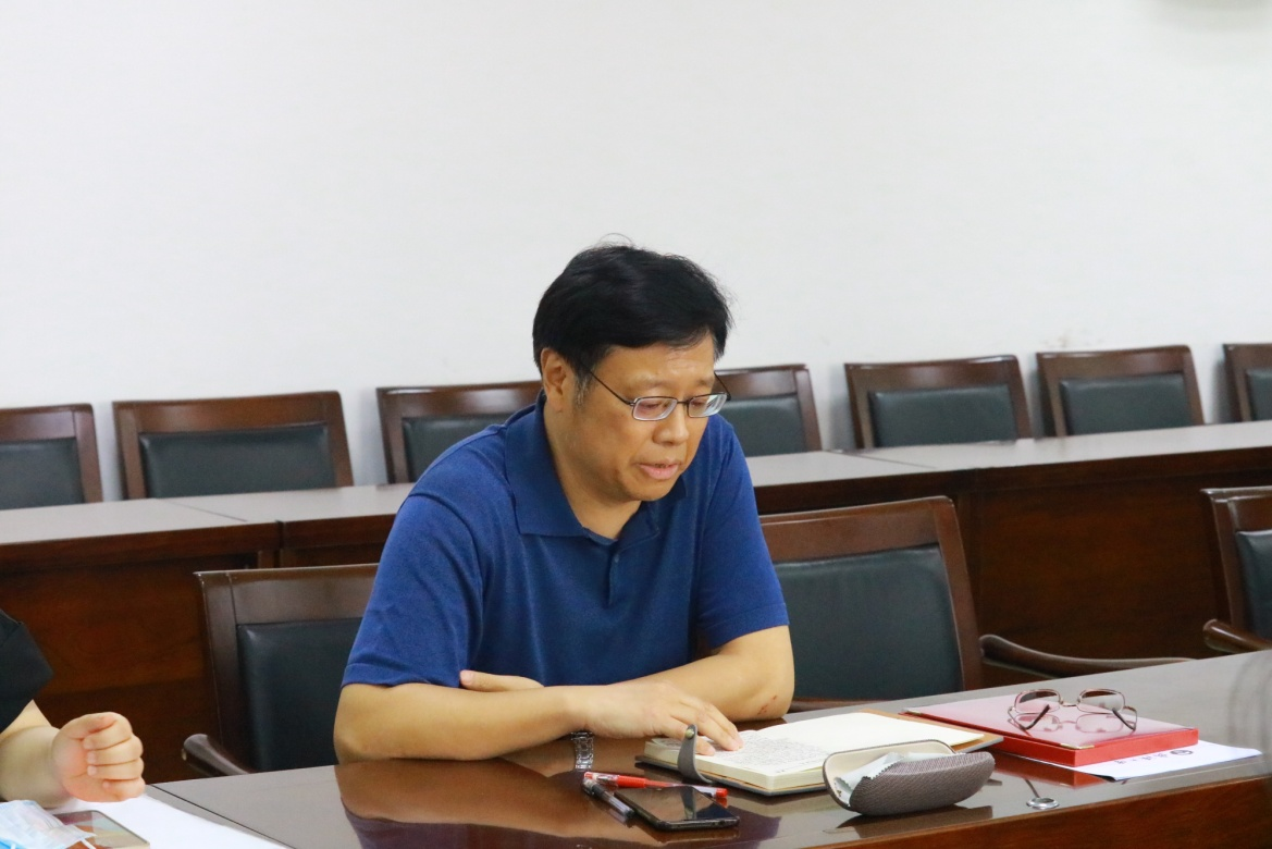 第四项,教师代表英文系党支部书记黄忠老师发言。黄忠老师强调了设立研究生德育导师的原因以及重要性,作为研究生导师应坚持立德树人为根本任务,加强对研究生的思想政治教育,研究生作为未来的国之栋梁政治立场必须坚定。并表态接下来会克服困难做好德育导师的各项工作。