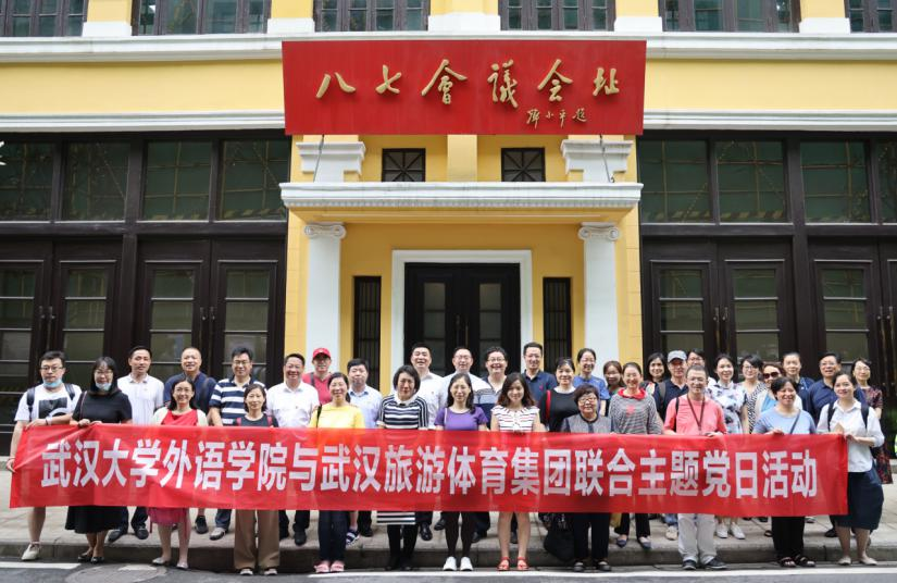 2021年6月10日,学院党委书记黄宏发、院长马萧带领英文系、俄文系和翻译系支部部分党员代表共37人,与武汉旅游体育集团党委党员代表联合举行党史学习教育主题党日,开展校企共建活动。