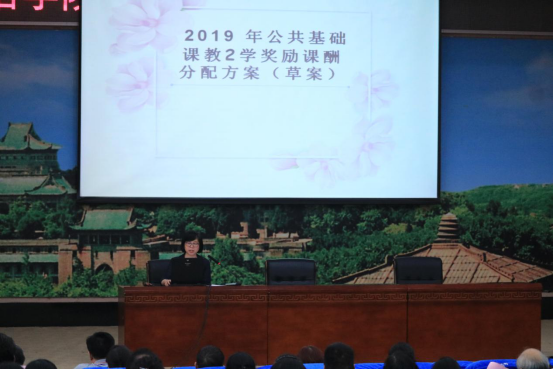 大学英语部主任程向莉就《大学英语教学部公共基础课奖励课酬质量提升方案》(以下简称《方案》)进行说明。她介绍了《方案》的制度背景、常规工作程序以及2019年的实施状况并提出了2020年教学质量提升方案及大学英语教学奖励课酬新分配方案,新方案着重强调了以工作量和教学质量两大指标为基础的分配原则。