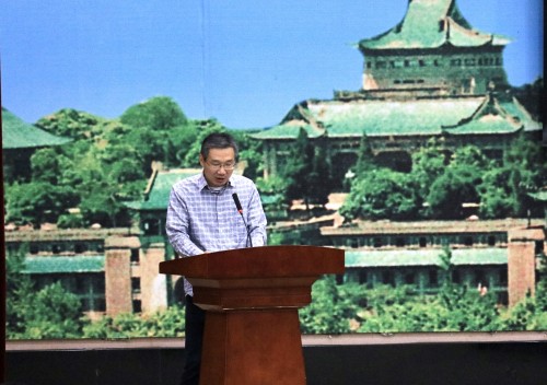 首先,党委副书记、工会主席胡浩致辞,他对红桃视频