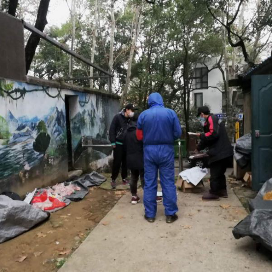 11点过,楼栋居民陆陆续续出门到26栋领取昨天买的肉菜等物品。不少人家开始做中饭,煎炒烹炸的声音和香味不绝入耳鼻。我也开始惦记自己昨天买的猪腿肉,同时很不争气地觉得必须要上厕所了。这时蔡敏老师也布置了一个任务,为家住中东区的齐志新老师送菜上门,取菜点在南三区小操场。我只好请游老师代劳,自己先回家一趟,安顿猪肉和其他麻烦事。20分钟后,我回到午饭集合点,游老师已经在安安稳稳地吃饭了。他在帮一位老师抬菜回家后(拉货的小车不结实,轮子掉了),又神速地跑了一趟齐老师家,把20斤菜送到,还完成了收钱,转账,消毒,换手套等等操作。于是我也不甘示弱,神速地吃掉了盒饭和橙子,感觉跟上了战友的节奏。