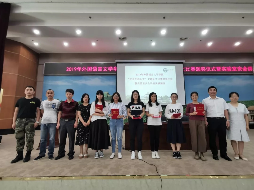 “安全在我心中“主题征文比赛颁奖仪式暨实验室安全讲座实操演练在学院报告厅举行。本次活动由黄媛老师主持,院党委书记黄宏发老师、院党委副书记孙燕老师、学院副院长贾玉敏老师、辅导员刘迪老师、辅导员刘铮老师、实验中心温建科主任、学校保卫部何平老师及消防安全主讲人吴聪教官出席了会议。