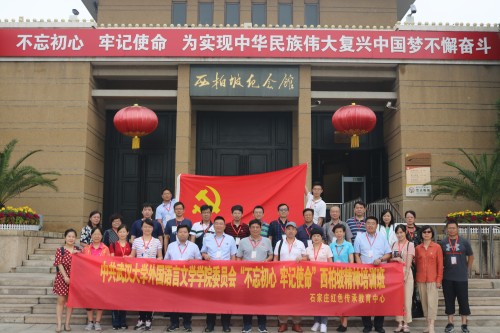 党委于2019年8月19日-21日赴西柏坡开展了“不忘初心 牢记使命”党性教育实践活动。学院党委书记黄宏发担任领队,学院院长马萧、党委副书记孙燕、副院长胡谷明、游长松参加了本次培训。同时参加培训的有学院各教师党支部书记、党员系部室主任、辅导员等共计29人。
