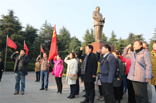 10日上午,在毛泽东铜像广场,学员们排成整齐的队伍,向毛主席铜像敬献花篮,表达对主席的缅怀和崇敬之情;然后,在毛主席铜像前,党委书记黄宏发同志带领全体党员一起重温入党誓词,表明了共产党员永远忠于党、忠于人民的决心。