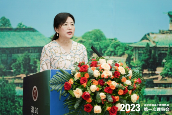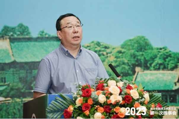会长刘军平教授在开幕式致辞中提出,湖北译协积极响应国家发展战略,努力打造翻译“楚军”,增强荆楚文化影响力。全体译协理事成员应努力讲好荆楚故事,传播荆楚好声音,积极推动中西部地区翻译研究和行业发展,促进翻译人才培养和队伍建设,助力我国国家翻译能力建设和国际传播能力建设,为展现真实、立体、全面的中国做出湖北翻译界的贡献。刘会长还介绍了湖北译协近期开展的多项特色鲜明的翻译活动,通报了翻译专业学位研究生教育2023年年会主要精神和有关翻译博士专业学位(DTI)的最新进展。