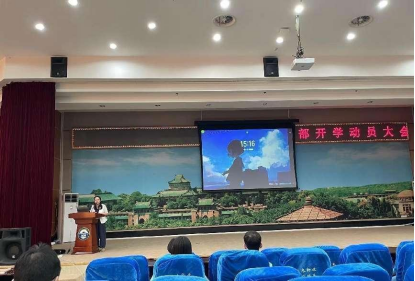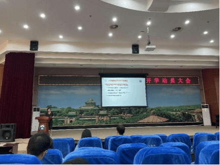 报告厅召开新学期开学动员大会。动员大会由大学英语部主任文芳主持,红桃视频