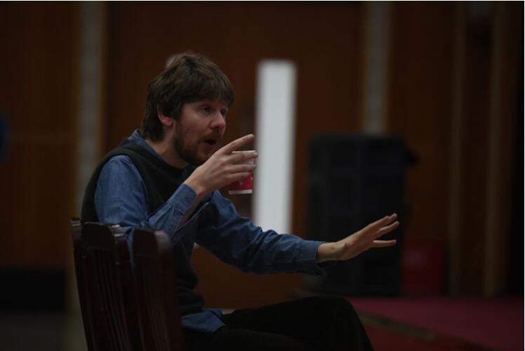 (西蒙导演与演员们一起排练)
