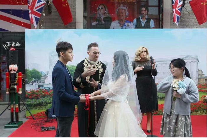 12月16日,武大外院学生代表队在武汉杜莎夫人蜡像馆参加了英国创意文化周暨英国圣诞季嘉年华开幕活动并再次献演《罗密欧与朱丽叶》的精彩片段。英国驻汉总领事卫亭瀚先生继头天晚上观看了华丽剧场版之后,再次观赏了此次的精华版演出,并且给予了高度的评价。