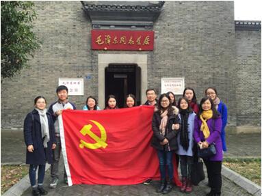 2016级小语种研究生党支部共11位党员以“冬日暖阳,党旗飘扬”为主题开展了主题党日活动。党员们先后参观了中共五大会址、毛泽东故居和中央农民运动讲习所旧址,深化了“两学一做”学习教育效果。院党委副书记胡浩老师以普通党员身份参加了活动。