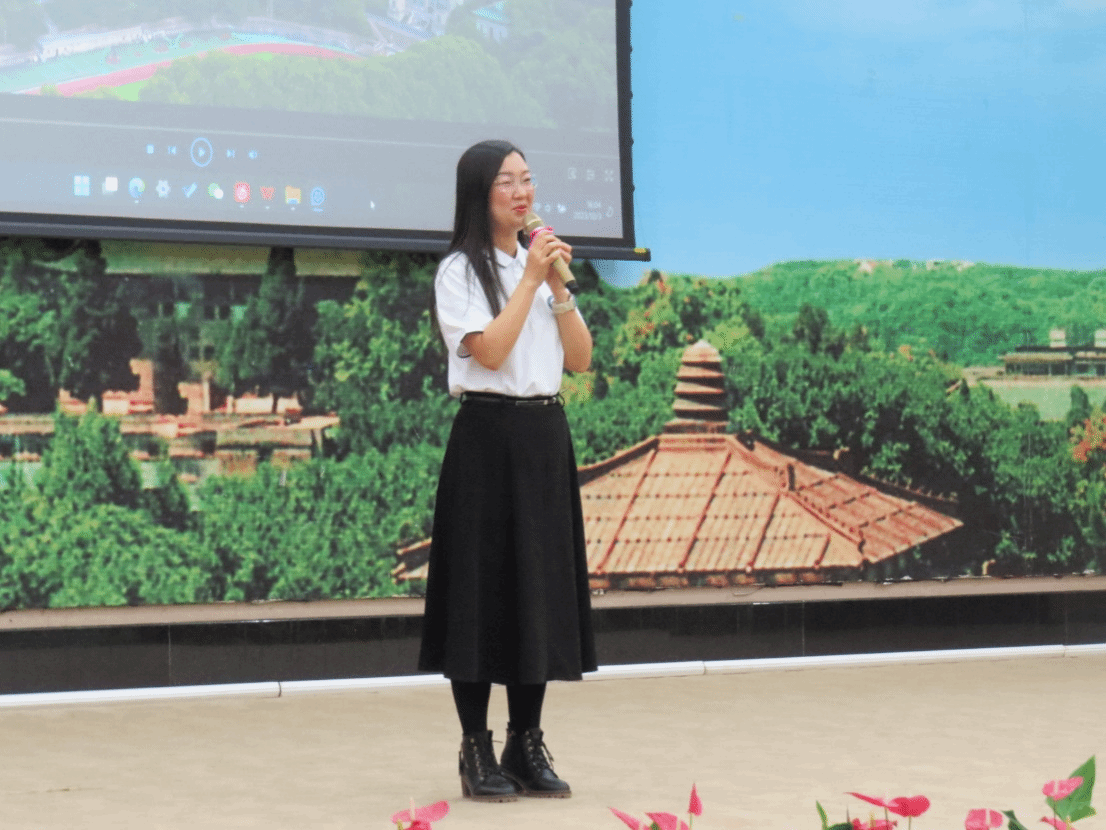 之后,法语专业退休老教师代表熊剑秋老师上台致辞。熊老师饱含深情地回忆了当年与学生们共度珞珈时光的点点滴滴,表达了见证大家从青涩的少年成长为在各行各业发光发热的优秀人才的骄傲与自豪之情,言语间满是一位优秀的人民教师对学子们的殷殷期盼与谆谆教诲。