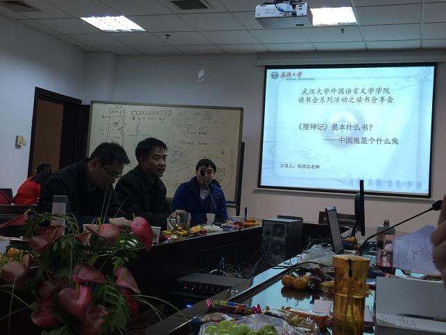 第二位发言的嘉宾是朱老师。朱老师的分享主题是:《搜神记》是本什么书?——中国鬼是个什么鬼。这新奇又略带调皮的题目立刻让大家兴趣大增。通过《搜神记》中记载的小故事,朱老师为我们讲述了中国人从古至今流传的鬼神观以及中华民族文化的很多有趣细节。故事的趣味性和朱老师幽默诙谐的讲解使同学们兴味盎然,笑声阵阵。