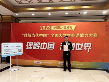 12月7日,2023“外研社·国才杯”“理解当代中国”全国大学生外语能力大赛(多语种组)国赛决赛在北京举办。在法语系苏昉、姜俊钦、范舒扬三位老师的指导下,23级硕士研究生李胜泽在比赛中取得优异成绩,荣获国赛银奖。