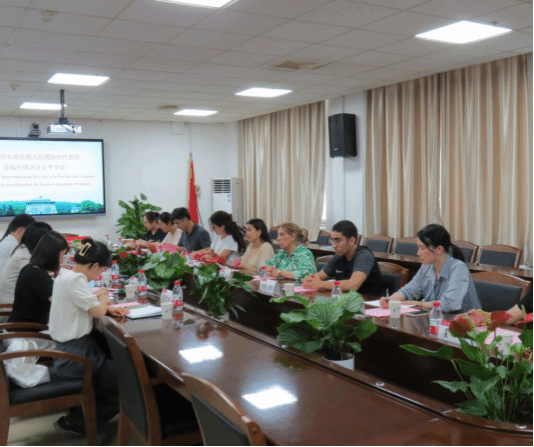 法方代表团团长伊内斯·纳比尔(Inès Nabil)女士介绍了法国人民援助会的宗旨、人员组成、在法国与全球范围内的主要活动与合作情况。随后,团员法利达·本查阿(Farida Benchaa)、卡米尔·巴尔布(Camille Barbe)详细介绍了国内首个成功落户湖北的“世界儿童是一家”(Copains du monde)儿童村项目。该项目将选派法国青少年来鄂参加活动,加强鄂法青少年交流,增进两地民间友好。2023年,在法国人民援助会的邀请下,湖北省青少年代表团曾赴法国南部阿尔代什省梅拉市参加了“世界儿童是一家”儿童村活动。团员哈姆扎·费拉(Hamza Ferrah)介绍了他在法国人民援助会中作为志愿者的经历和感受,该协会的志愿者来自各行各业,不分年龄,以促进无国界、无条件的团结。