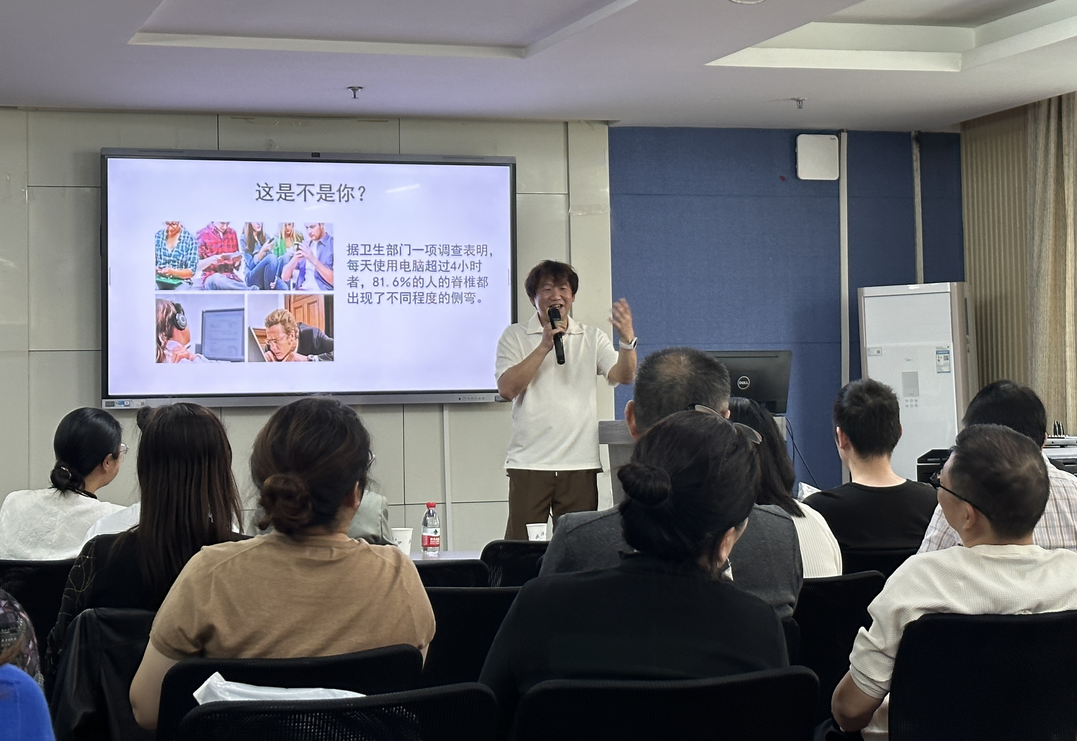 在此次讲座中,余达蔚医生细致入微地讲解了颈椎及肩颈问题的预防与治疗方法。他提到,在快节奏的生活中,各种不良习惯使得颈椎病变得普遍,严重干扰了人们的日常生活。颈椎问题不仅损害颈部健康,还可能引发呼吸系统疾病、头晕头痛等症状。凭借丰富的临床实践经验,余医生生动地阐释了颈椎病的危害及有效的预防策略。他着重指出,培养良好的生活习惯、合理调整坐姿、定期进行颈部锻炼是预防颈椎病的重要手段。在治疗方面,余医生介绍了康复医学在颈椎病治疗中的重要作用,并现场指导大家进行穴位按摩和颈部腰部康复运动,为师生提供了专业的健康咨询服务。讲座现场气氛热烈,教师们跟随余医生深入浅出并带有实操性的讲解,进行颈椎操演练,纷纷表示受益匪浅,意犹未尽。通过参与本次讲座,红桃视频