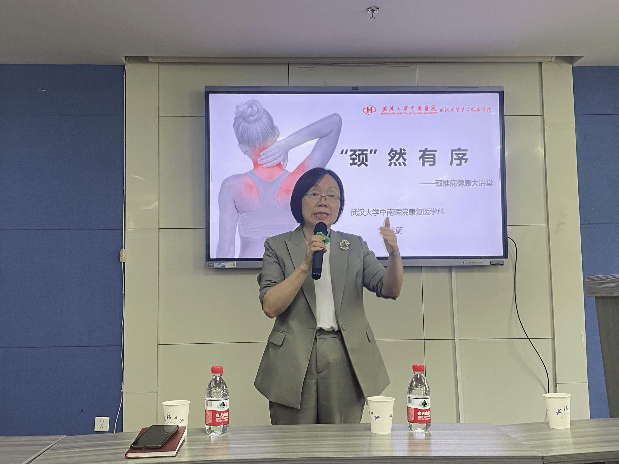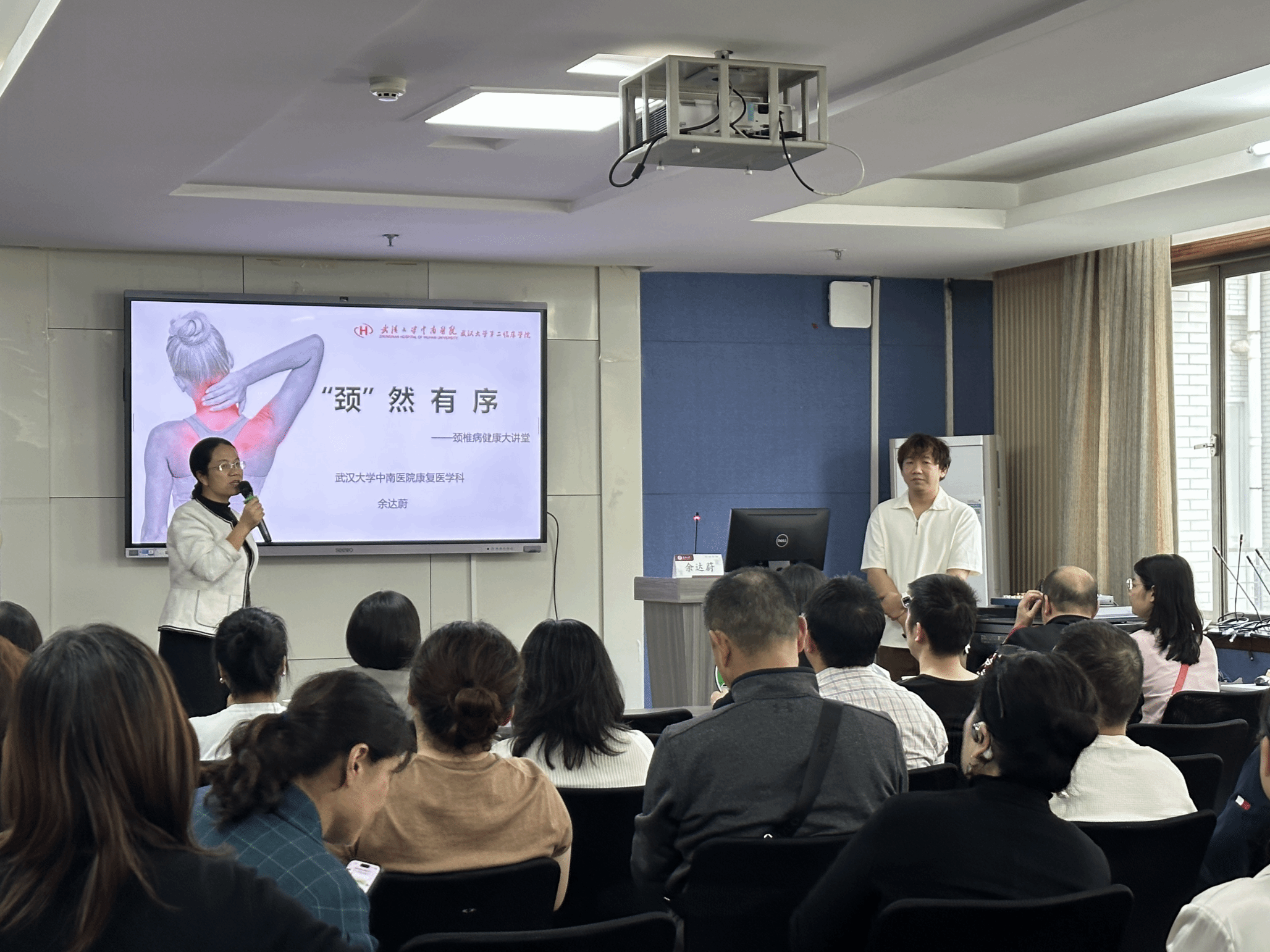 校医院,特别邀请中南医院康复医学科门诊治疗室负责人余达蔚医生,于11月14日在学院3005会议室举办了一场以“颈然有序”为主题的健康知识讲座。校医院党委书记周玉霞率专家团队现场指导,院领导及全院80余名老师参会,讲座由院党委副书记兼工会主席周翠芳主持。