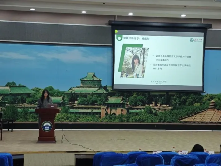 2021级翻译系姚蕴轩同学向大家传授了许多保研的经验。她详细解读了保研流程以及加分细则,学术活动的参与夏令营的精彩历程,还有预推免的快速通道。在这过程中,姚蕴轩同学用亲身感悟告诉大家,努力如同坚实的基石,比选择更为重要。