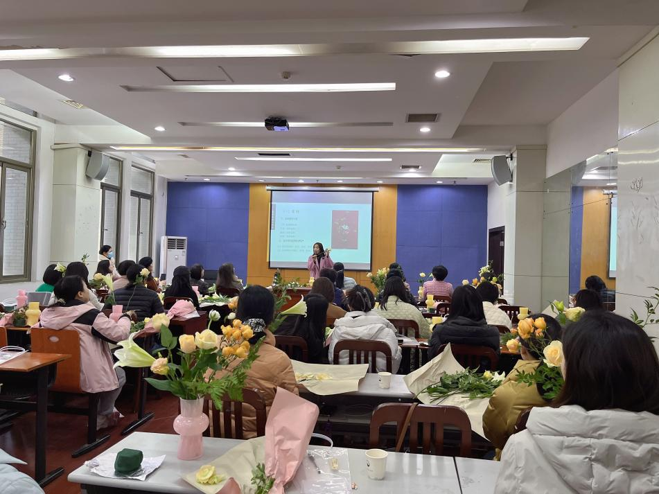 1033 室拉开帷幕。全校近五十名女教职工齐聚一堂,展开与花艺创作的美妙邂逅。