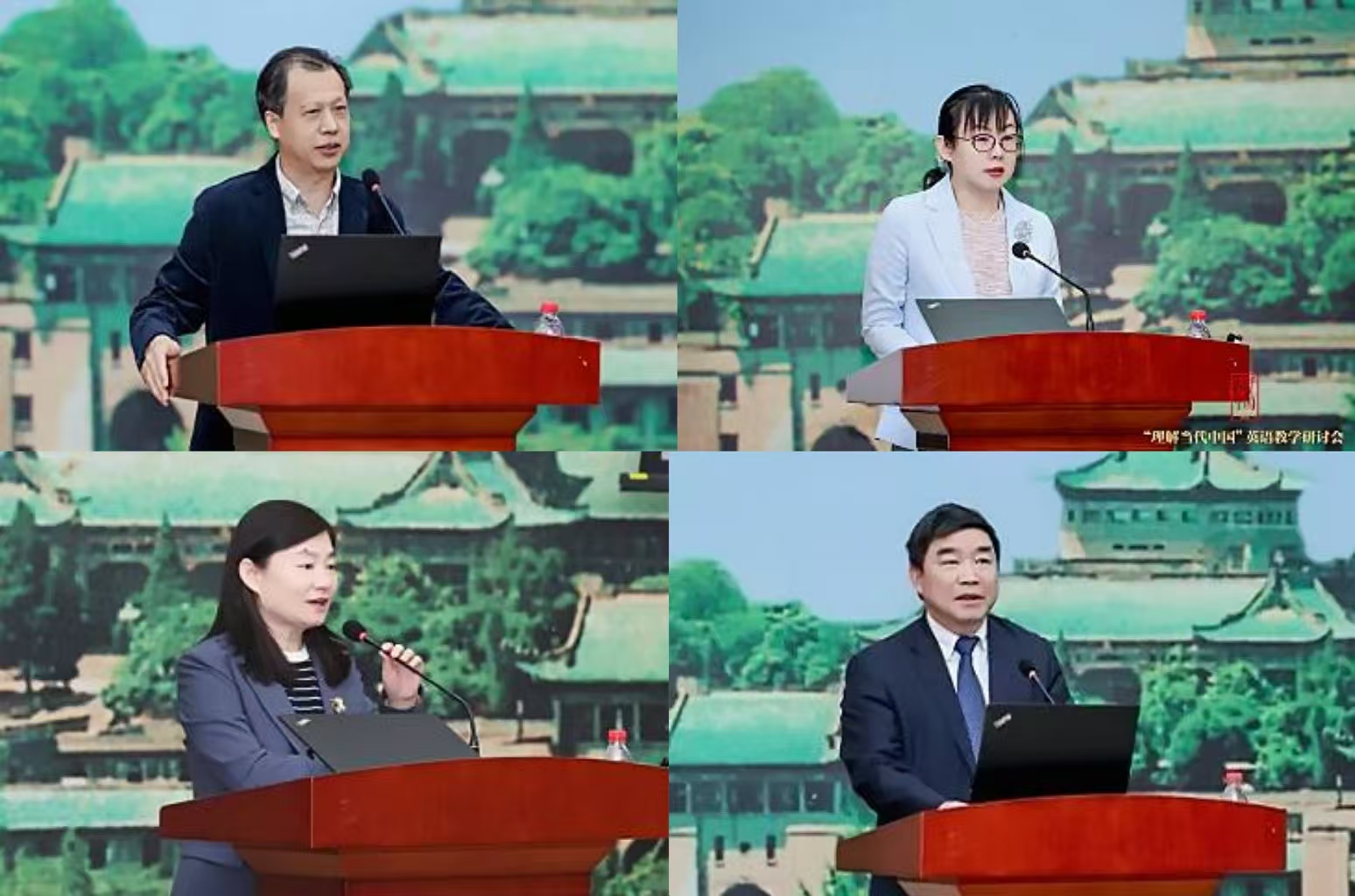 在第二天的经验交流环节中,清华大学吴霞教授、华中科技大学许明武教授、中南财经政法大学袁奇教授和陕西师范大学朱冬怡副教授分享了各自的课程建设经验。外研社万健玲主任介绍了外研社为支持"理解当代中国"系列课程建设而构建的多维度教学支持体系。