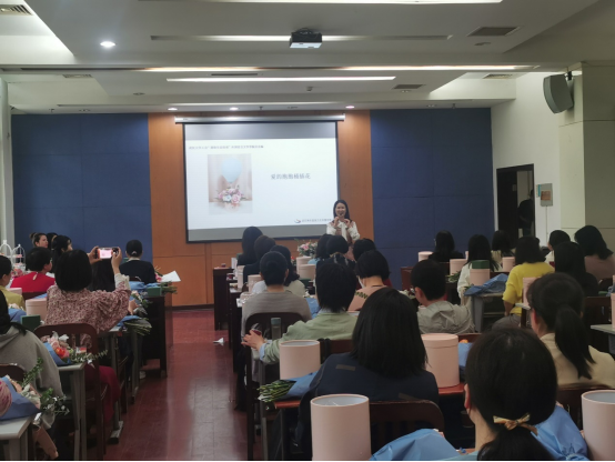 工会主席周翠芳致辞,感谢校工会对此次活动的大力支持,值此母亲节来临之际,希望此次活动能让每位老师都能身心愉悦,收获丰盈。