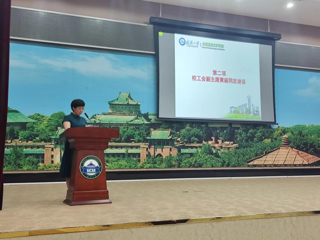 所有教职工在推进学院建设和学校工会发展中的所做贡献表示衷心感谢。她认为,近年来,院党政领导班子带领全体教职员工全面贯彻党的教育方针和学校工作部署,认真落实立德树人根本任务,坚持内涵式发展、高质量发展,学院综合实力和核心竞争力有所增强。学院工会在激发教师发展内生动力,形成民主决策、民主管理、民主监督的有效机制,推动学院高质量发展方面起到积极作用。她希学院工会在院党委的领导下,以习近平新时代中国特色社会主义思想为指导,贯彻落实党的二十大精神,履行好群团组织的职能,进一步调动广大教职工服务学院发展的主动性、积极性和创造性,团结带领全院教职工发扬主人翁精神,以高度的责任感和积极向上的工作热情服务于学校和学院的“双一流”建设。