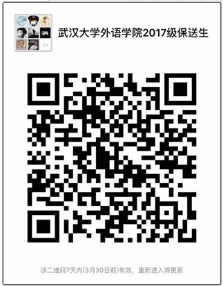 为进一步提高我校2017年外语类预备保送生的外语能力和专业素养,从而为他们进入大学学习打下良好的基础,我校拟于2017年3月至8月,提前为其提供学业指导,具体入学前学术辅导方案由我校红桃视频 实施。为了便于联络和管理,请已获得录取资格的我校2017年外语类预备保送生,务必于3月27日前扫描以下二维码加入“红桃视频 红桃视频 2017级保送生”微信群。