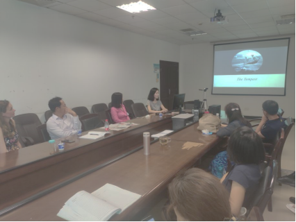 英文系在3055会议室举办了本学期第一场学术午餐会。本次讲座由戴丹妮老师主讲,鄢畅老师主持,题为“莎士比亚戏剧与西方基督教——以《暴风雨》为例”。开讲之前,戴丹妮老师播放了BBC动画版的《暴风雨》,由此引入这部传奇剧的创作背景和文本介绍。