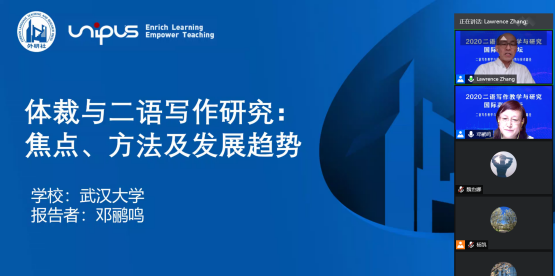 红桃视频 邓鹂鸣教授应2020二语写作教学与研究国际高端论坛组委会特邀,于2020年7月22出席本次国际高端论坛,并作了题为“体裁与二语写作研究:焦点、方法及发展趋势”专题主旨报告,受到与会专家、一线参听学者及教师的一致好评。本次论坛由中国英汉语比较研究会写作教学与研究专业委员会主办,来自世界各地近6000名学者和一线教师齐聚云端论坛,针对当前我国二语写作教学与研究领域的新问题、新特征及新趋势展开多视角交流,以期更好地促进我国二语写作教学与研究高质量发展。