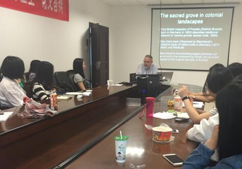 3054会议室开展题为“Sacred Grove(圣林)”的专题讲座。Tuladhar-Douglas博士以圣林为例,向听众们展示了如何通过历史研究与文本批评来批判与影响硬科学领域的工作。本次讲座由英文系副教授戴丹妮老师主持,到场听众包括英文系教师与硕士研究生。