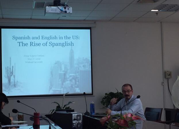 师生举办了两场学术讲座。Jorge Lopez Cortina是西东大学语言文学与文化系的副教授,主要研究领域为西班牙语语言学,语言政策与规划和少数民族语言发展。