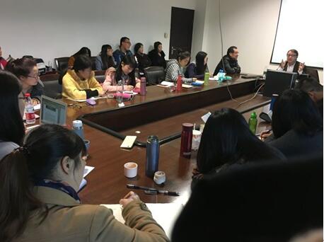 ,并于2015年11月17日上午九点在外院五楼法会议室为法语系全体硕博生奉献了一场主题为“Essence et existance du jardin paysager anglais”的讲座。讲座由法语系主任吴鸿渺教授主持,法语系冯雪俊教授、王战教授和张亘教授以及中青年教师参加了讲座。