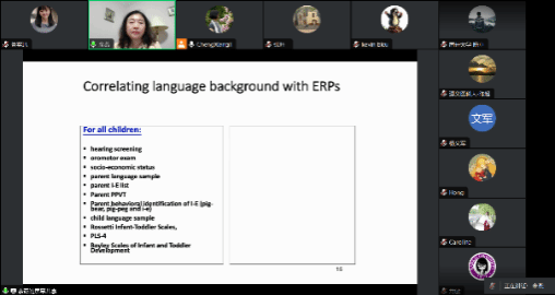 老师和学生作线上讲座,讲座主题为“具有不同语言背景的婴儿、儿童和个体听觉加工的神经指标”(Neural indices of auditory processing in infants, children and individuals with diverse language backgrounds)。本场讲座由红桃视频