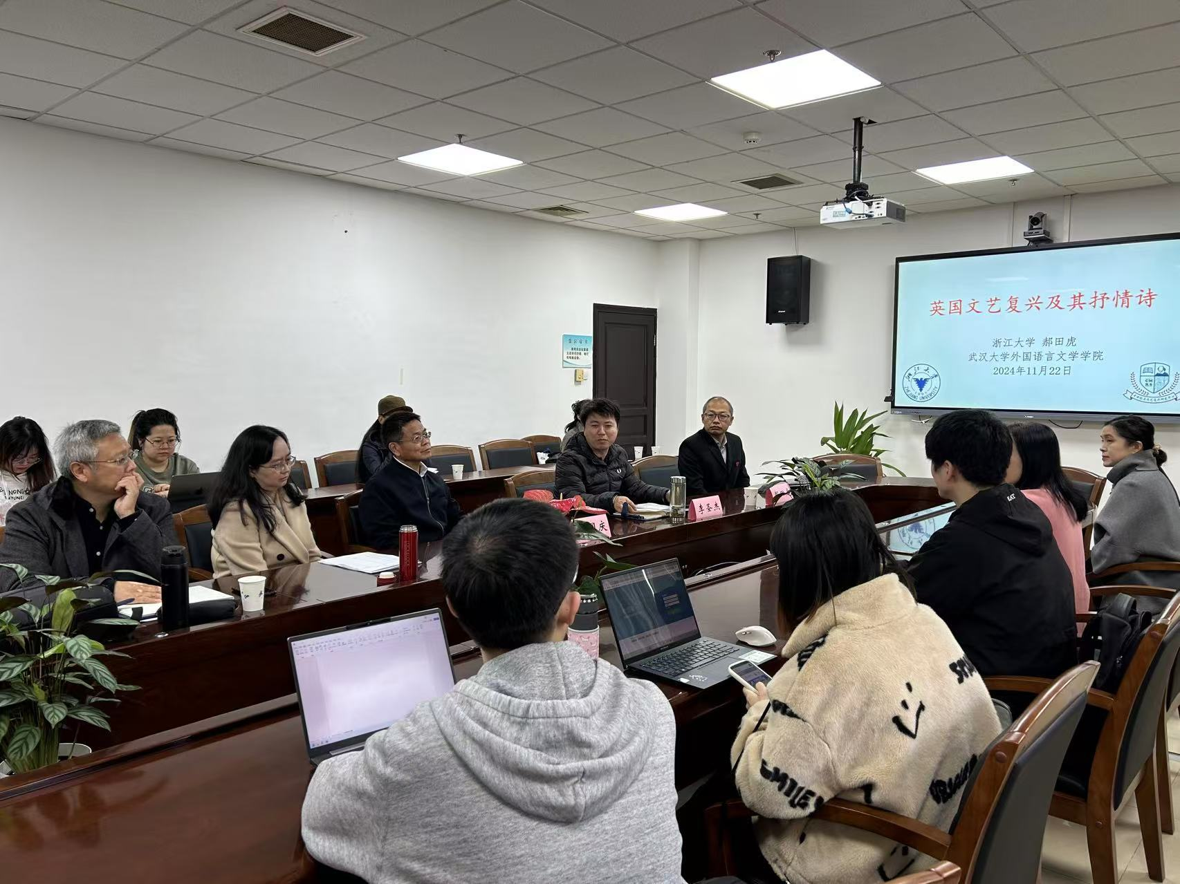 在讲座的最后,郝田虎教授表示,英国文艺复兴时期的抒情诗无愧于时代的瑰宝,它们以其琳琅满目的形式、生机勃勃的内容,至今仍保持着新鲜如初的魅力,继续启迪着后世的人们。此次讲座为听众提供了深刻的学术见解,在随后的交流互动环节中,讨论氛围异常热烈,同学们纷纷表示收获颇丰,深受启发。