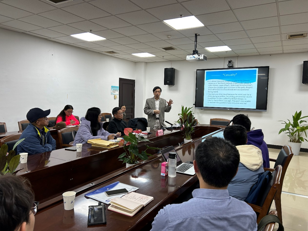 在讲座的最后,张剑教授表示,希望听众能够通过这次座谈,更加全面地了解谢默斯∙希尼在元诗歌中展现的审美关照,进而增进人们对他的整体诗歌成就的认识与欣赏。他鼓励大家在阅读希尼诗歌时,不仅要关注其文字表面的美,更要深入挖掘其背后的深层含义与思想价值,从而真正领略到这位伟大诗人的艺术魅力与精神风采。此次讲座为听众提供了深刻的学术见解,在交流互动环节,谈论氛围活跃,同学们受益匪浅。