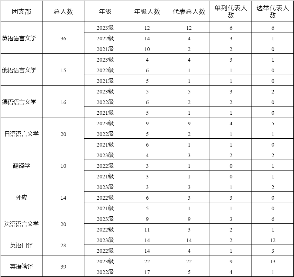 代表由单列代表和选举代表组成。单列代表包括班长、团支书、党支书、党总支成员以及校院两级学生会部长级以上干部等;选举代表经各团支部民主选举产生,以团支部为单位组成代表团。各代表团代表名单报大会筹备委员会资格审查组。