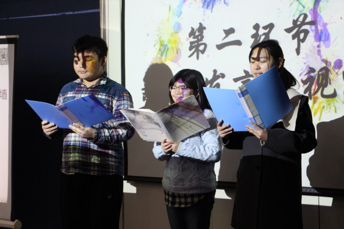 在主持人简短的开场白之后,第一轮比赛正式开始。参赛的六支队伍首先分别按照抽签顺序依次上台进行两分钟的团队风采展示。六支队伍“各出奇招,”中英文诗朗诵、舞蹈、“新闻联播”,小情景剧等展示形式多样,幽默风趣,充分展现了外院学子的青春和朝气,台下嘉宾观众掌声一片。