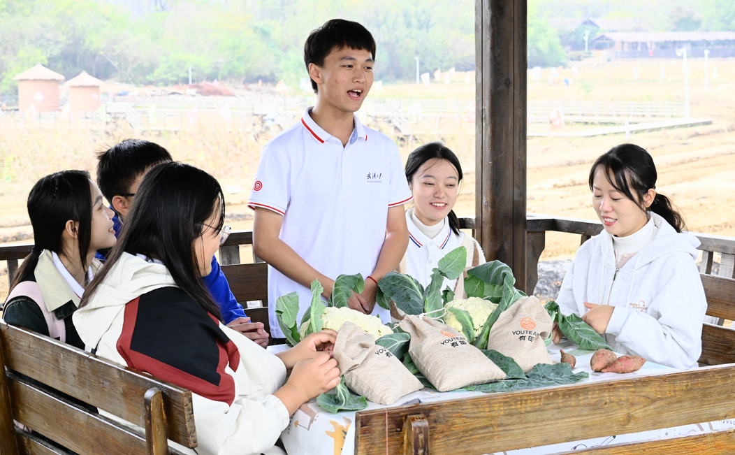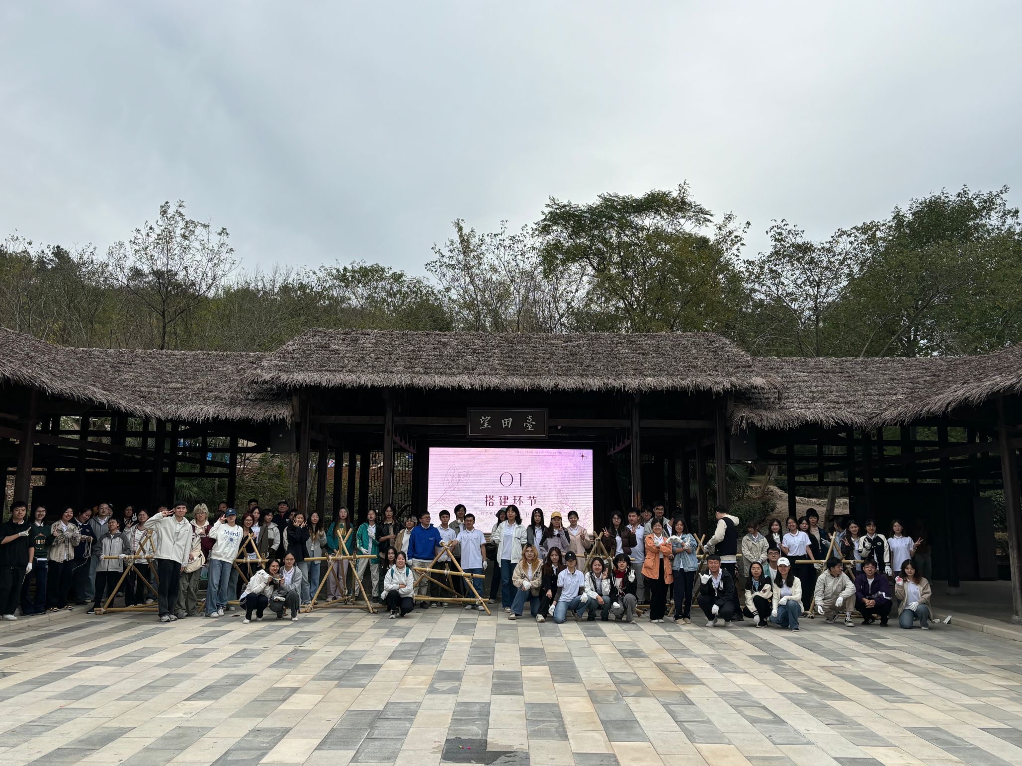 迎来了一场别开生面的劳动教育实践活动,学院党委书记黄宏发带队,聘请信息学部第四食堂经理张建兵老师作为劳动导师,英文系老师左广明、2023级涉外法律人才实验班班级导师张东燕、2023级德语班级导师鲁晓雁、本科生辅导员王文卓、兼职辅导员邓亚雯共同参与此次劳动实践教育。73位同学与老师们在秋日丰收的田野上学习扎染工艺、亲手种植蔬菜、体验助农直播,动手搭建竹制炮架,体验劳动的艰辛与快乐,习得劳动的技能与价值。