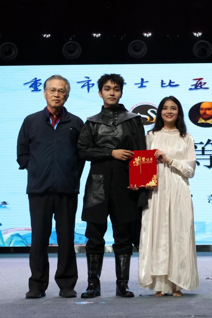 本科生崔盛琳、李思睿、李浩芃和龙宇彦四人组成,在领队左广明老师的带领下,由导演鄢畅老师指导的莎士比亚四大悲剧之一《奥赛罗》在舞台上得到了极为精彩、艳惊四座的演绎,收获了来自专家评审的高度赞扬与现场观众的热烈掌声,并以90.3分的最高分斩获本次比赛的一等奖。