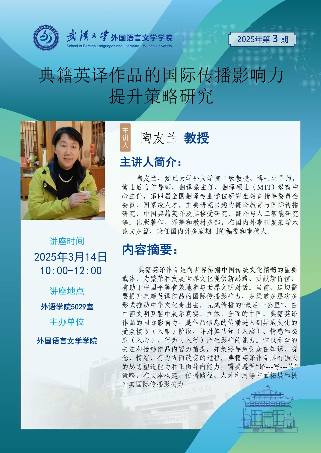 陶友兰:典籍英译作品的国际传播影响力提升策略研究