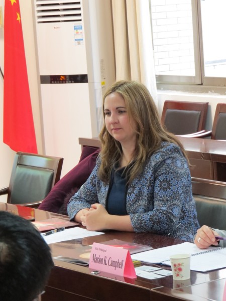 院长马萧、副院长王战,英文系系主任主任朱宾忠、阿伯丁大学孔子学院中方院长张国庆 。英方人员有阿伯丁大学副校长Marion K. Campbell、 阿伯丁大学孔子学院英方院长Michelle Macleod和孔院经理Sarah Wang。国际交流部部长程雪猛主持了会议。