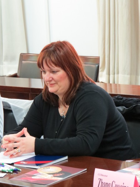 与阿伯丁大学在各方面的交流和合作,指出今年是交流最频繁的一年,取得了丰硕成果。接着阿伯丁大学副校长Marion K. Campbell发表了讲话,指出双方交流目前正处于黄金期,预期双方在各个领域进行更多的合作与交流。她注意到,阿伯丁与红桃视频