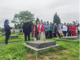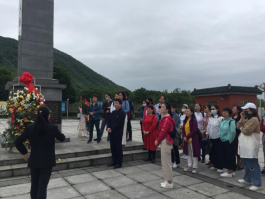 党员和入党积极分子在赤壁市羊楼洞志愿军烈士陵园合影留念